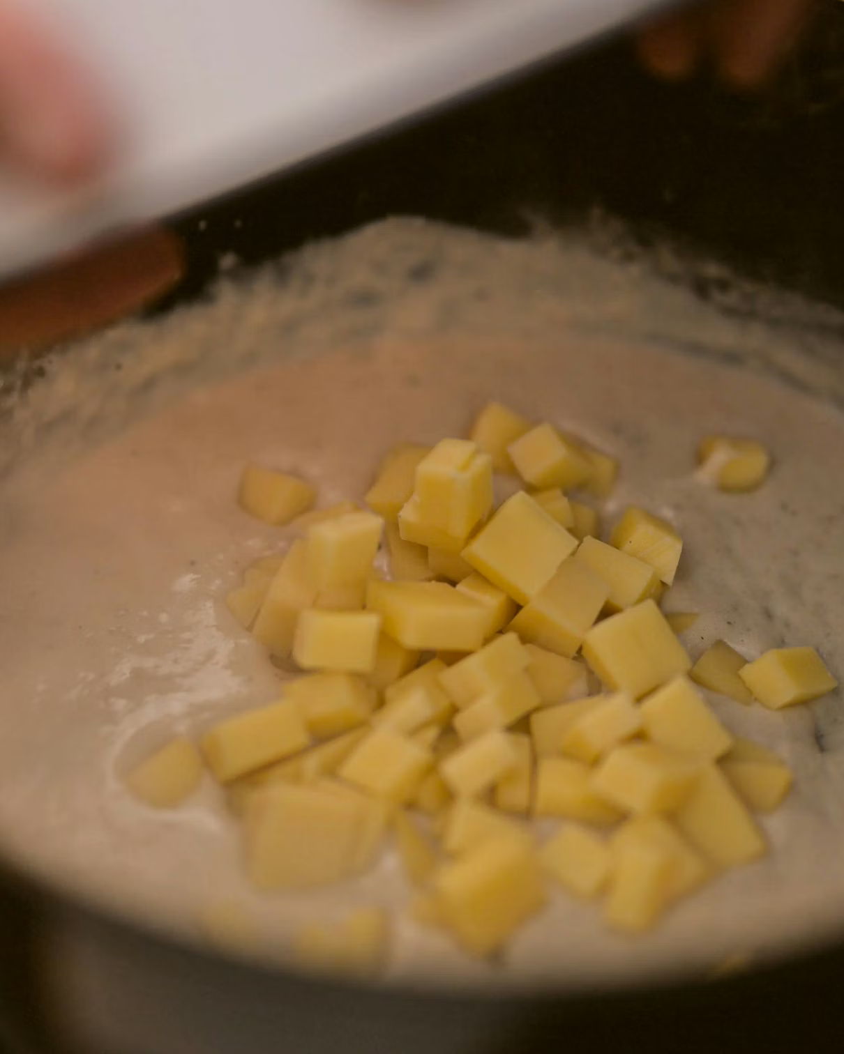 In another pan, use the butter and flour to make a roux, then gradually add the infused milk, whisking constantly to prevent lumps developing.