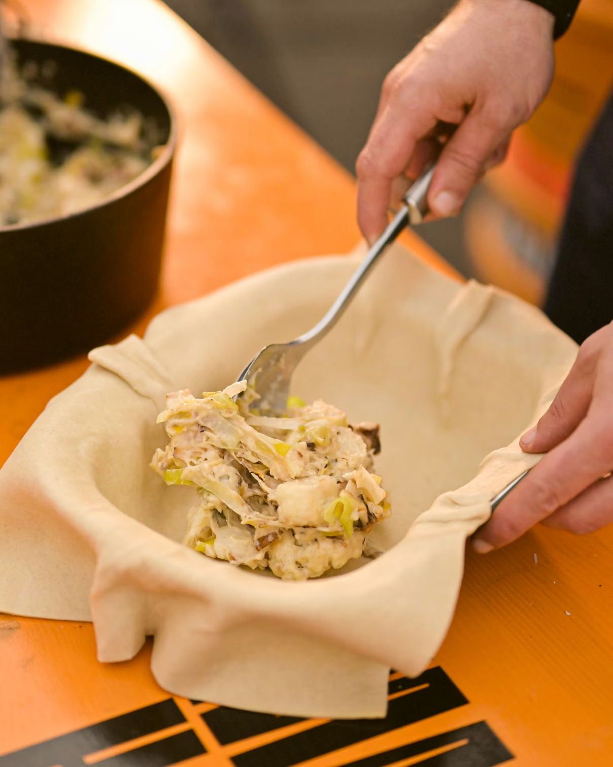 To me, this pie just screams spring. We’ve coloured the lamb, then braised it, all on the EGG, then thickened the cooking liquor, added butter beans...